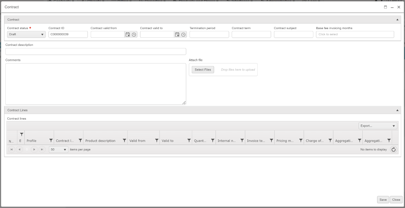 Note! At this point, you simply have an empty contract. Adding contract lines and, if the prices differ from list prices, new prices, will make the contract active for charging and billing.