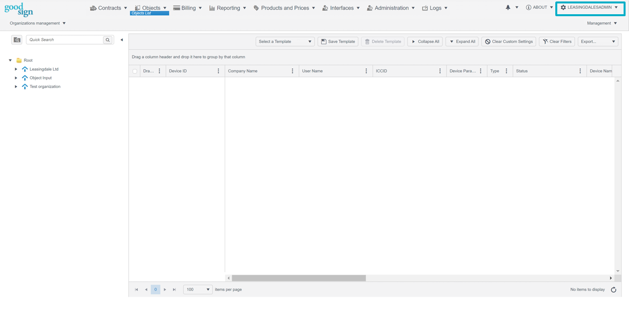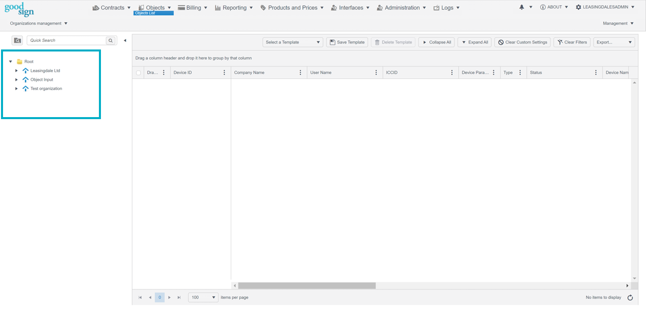 The Organization Tree is where you can organize organizations into groups by criteria best suited for your invoicing needs. The Organization Tree is visible in most dashboards and is how you filter the data you see in the grid area. To learn more about the Organization Tree and organizations in general, visit the How To Use Organizations user guide. In some rare dashboards, there’s a tree of products and product categories instead.