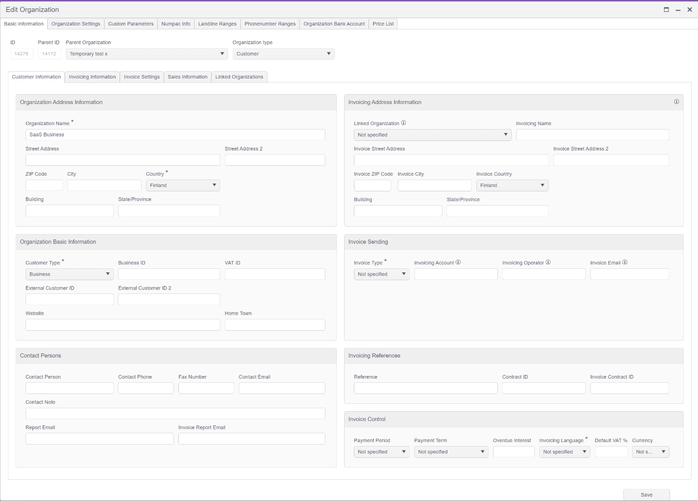 Before you start creating organizations, think about the way they should be grouped. What are the main drivers that define how they are invoiced. E.g.: