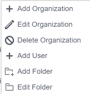 Organizations are recognized by their ID, Organization Name and place in the Organization Tree. All organizations have a unique ID. Organizations can also have users, which represent users of your services. This enables more granular control when needed. Organizations can be viewed in the Organization Tree or in the navigation menu Administration > Organizations.