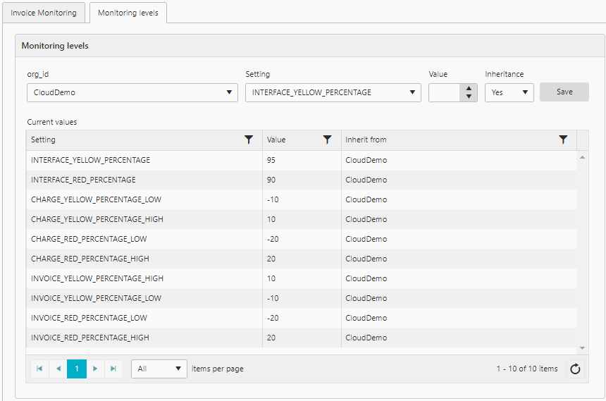 - 3175 Menu - Invoice Monitoring Alert levels (to edit alert levels)