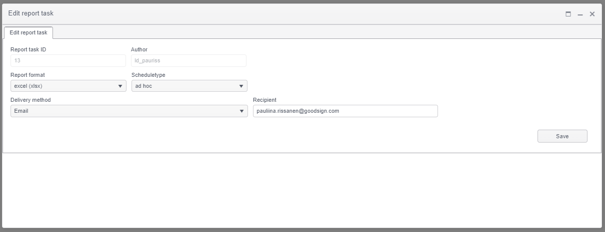 Once the report is run, the report appears on the main page Reports (new). Recurring reports can be seen and edited under Reporting > Report Tasks. Note! The Report Period is dynamically determined in relation to the report’s scheduled run time. For example, if the Report Period is the last three months and you’ve scheduled the report to run every 5th day of the month, every month will include the previous three months.
