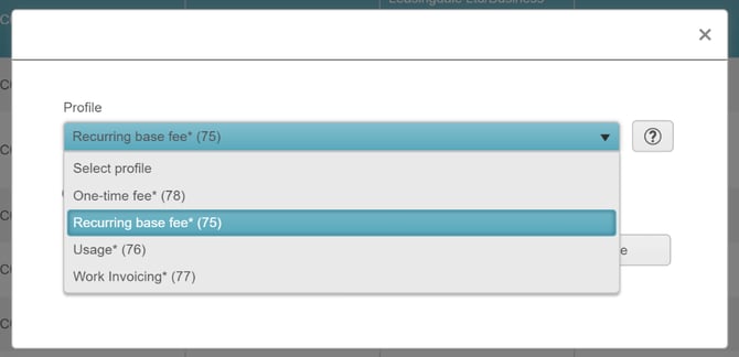 After pressing New Contract Line, a pop-up window appears where a suitable Profile (Charging model) for the Contract Line can be selected: